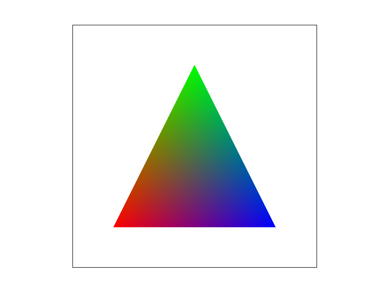 This image shows a triangle with red, green, and blue vertices. The interior colors are smoothly interpolated using barycentric coordinates.